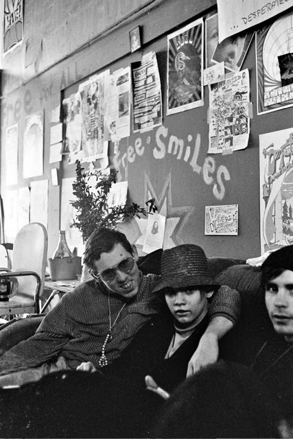 Emmett Grogan, Harvey Kornspan and Richard Brautigan at an Artists Liberation Front meeting, 1967. Photo by Lisa Law, courtesy Harvey Kornspan.